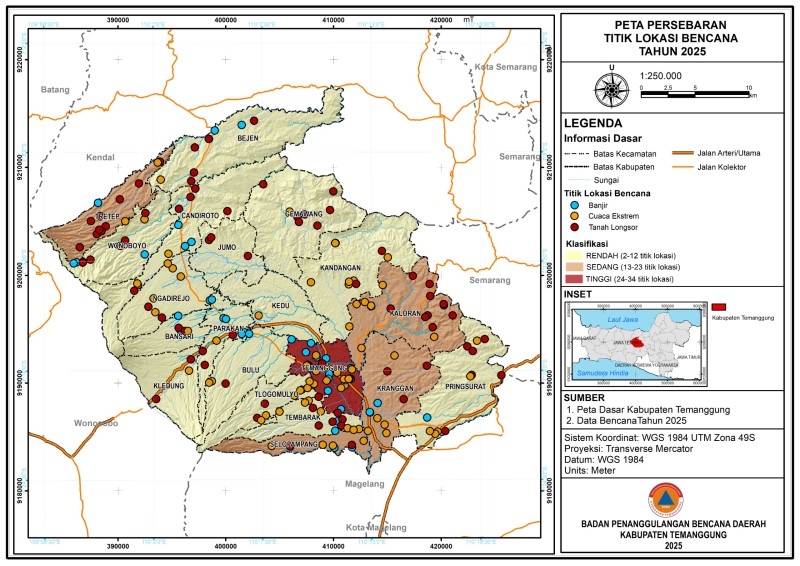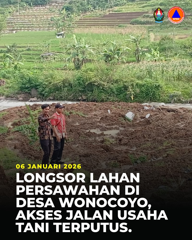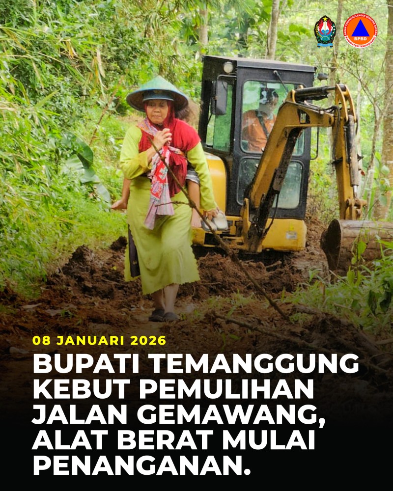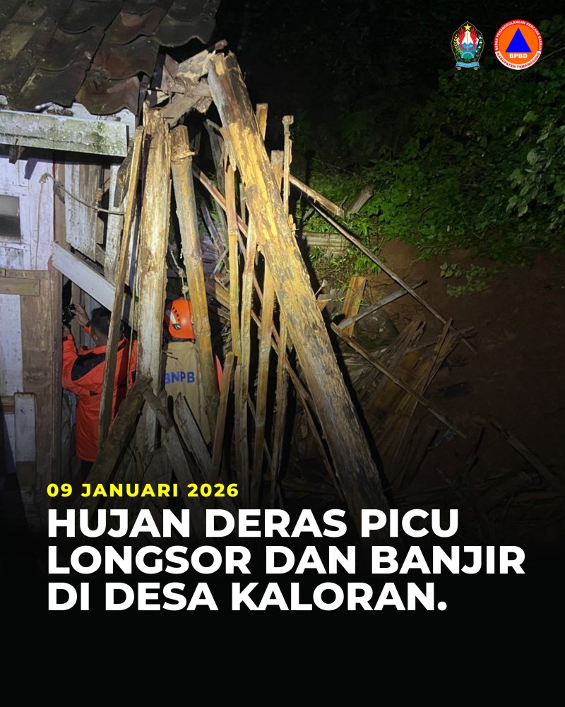 Kategori Smart Government (Pemerintah Cerdas) Kategori: Smart Government (Pemerintah Cerdas) Seksi Pencegahan dan Kesiapsiagaan 13 Januari 2026 19:26:00 13 Sebaran Bencana 2025, Kecamatan Temanggung Jadi Wilayah Paling Rawan Selengkapnya Kategori: Smart Government (Pemerintah Cerdas) Seksi Penanganan Darurat dan Logistik 10 Januari 2026 22:07:00 14 BMKG dan Badan Geologi Peringatkan Potensi Banjir dan Longsor, Temanggung Masuk Kategori Menengah–Tinggi Selengkapnya Kategori: Smart Government (Pemerintah Cerdas) Seksi Penanganan Darurat dan Logistik 09 Januari 2026 22:05:00 10 Mitigasi Dini, Pemangkasan Pohon Rawan Tumbang di Mungseng Selengkapnya Kategori: Smart Government (Pemerintah Cerdas) Seksi Penanganan Darurat dan Logistik 09 Januari 2026 19:05:00 19 BPBD Tinjau Lokasi Longsor dan Banjir di Desa Kaloran Selengkapnya Kategori: Smart Government (Pemerintah Cerdas) Seksi Penanganan Darurat dan Logistik 09 Januari 2026 07:11:00 4 BPBD Tinjau Longsor Drainase Jalan Lingkungan Banyukembar, Akses Warga Terganggu Selengkapnya Kategori: Smart Government (Pemerintah Cerdas) Seksi Penanganan Darurat dan Logistik 08 Januari 2026 22:09:00 3 Terjunkan Alat Berat, Bupati Agus Setyawan Kebut Pemulihan Akses Jalan Gemawang yang Terputus Selengkapnya Kategori: Smart Government (Pemerintah Cerdas) Seksi Penanganan Darurat dan Logistik 08 Januari 2026 12:15:00 9 BPBD dan Relawan SAR Lakukan Antar Jemput Gratis Puluhan Siswa Terdampak Longsor di Gemawang Selengkapnya Kategori: Smart Government (Pemerintah Cerdas) Seksi Penanganan Darurat dan Logistik 06 Januari 2026 19:20:00 3 Longsor Persawahan di Dusun Wonocoyo, Akses Jalan Usaha Tani Terputus Selengkapnya Kategori: Smart Government (Pemerintah Cerdas) Seksi Penanganan Darurat dan Logistik 06 Januari 2026 17:18:00 4 Bupati Temanggung Tinjau Lokasi Tanah Longsor di Gemawang-Ngadisepi Selengkapnya Kategori: Smart Government (Pemerintah Cerdas) Seksi Penanganan Darurat dan Logistik 05 Januari 2026 22:21:00 4 Longsor di Dusun Karawitan Tutup Saluran Irigasi dan Rusak Pipa Air Bersih Selengkapnya Kategori: Smart Government (Pemerintah Cerdas) Seksi Penanganan Darurat dan Logistik 04 Januari 2026 18:22:00 8 Rumah Dinas SD Negeri 3 Parakan Kauman Rusak Akibat Longsor Selengkapnya Kategori: Smart Government (Pemerintah Cerdas) Seksi Penanganan Darurat dan Logistik 02 Januari 2026 23:04:00 107 Tanah Longsor Kembali Terjadi di Jalan Raya Gemawang–Ngadisepi Selengkapnya 123NextLast