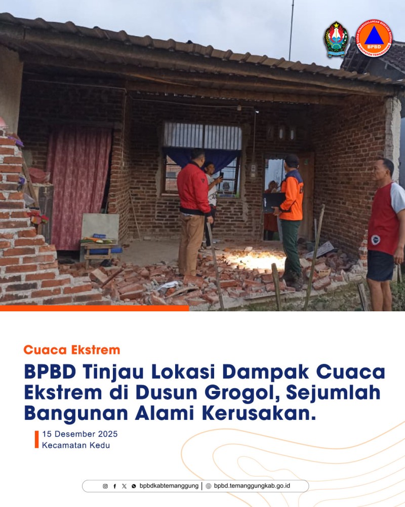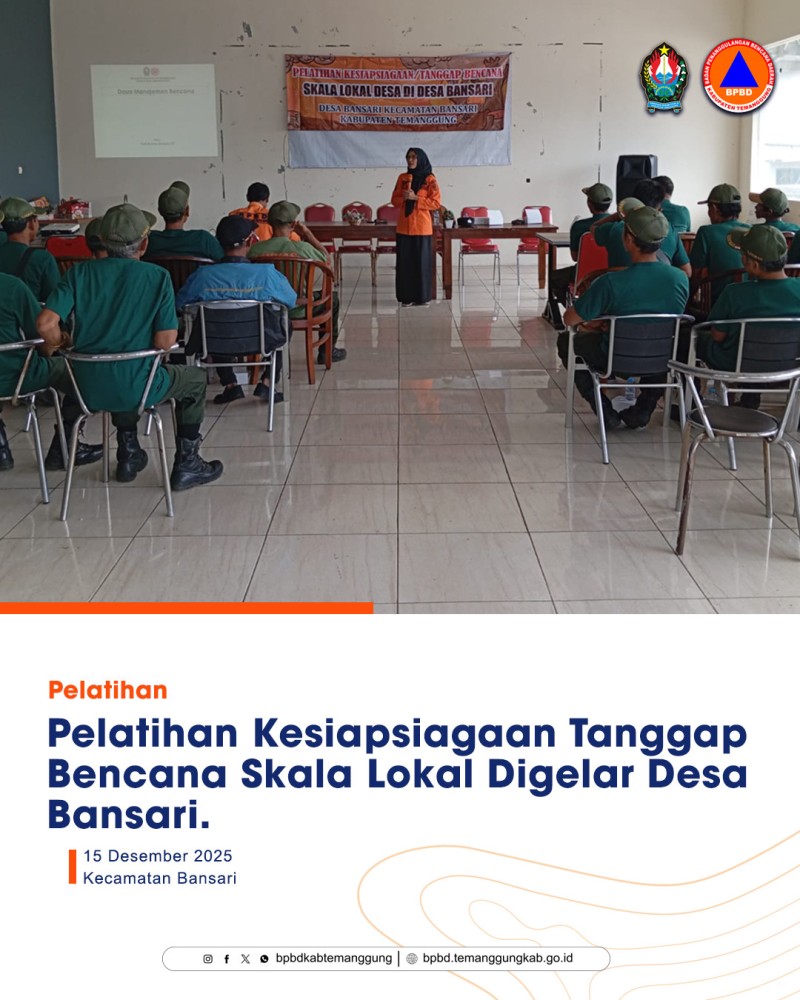 Kategori Smart Government (Pemerintah Cerdas) Kategori: Smart Government (Pemerintah Cerdas) Seksi Pencegahan dan Kesiapsiagaan 16 Desember 2025 06:51:00 34 LAPORAN AKTIVITAS GUNUNGAPI SUMBING 16 DESEMBER 2025 Selengkapnya Kategori: Smart Government (Pemerintah Cerdas) Seksi Penanganan Darurat dan Logistik 15 Desember 2025 20:44:00 22 BPBD Lakukan Tinjau Lokasi Dampak Cuaca Ekstrem di Dusun Grogol, Sejumlah Bangunan Alami Kerusakan Selengkapnya Kategori: Smart Government (Pemerintah Cerdas) Sekretariat 15 Desember 2025 17:45:00 28 Pelatihan Kesiapsiagaan Tanggap Bencana Skala Lokal Digelar Desa Bansari Selengkapnya Kategori: Smart Government (Pemerintah Cerdas) Seksi Pencegahan dan Kesiapsiagaan 15 Desember 2025 17:42:00 21 Puskesmas Parakan Perkuat Kesiapsiagaan Melalui Simulasi Penanganan Darurat Bencana Selengkapnya Kategori: Smart Government (Pemerintah Cerdas) Seksi Pencegahan dan Kesiapsiagaan 15 Desember 2025 07:53:00 20 LAPORAN AKTIVITAS GUNUNGAPI SUMBING 15 DESEMBER 2025 Selengkapnya Kategori: Smart Government (Pemerintah Cerdas) Seksi Pencegahan dan Kesiapsiagaan 15 Desember 2025 06:54:00 27 LAPORAN AKTIVITAS GUNUNGAPI SUNDORO 15 DESEMBER 2025 Selengkapnya Kategori: Smart Government (Pemerintah Cerdas) Seksi Pencegahan dan Kesiapsiagaan 14 Desember 2025 15:41:00 22 Personel BPBD Tinjau Lokasi Tanah Longsor di Desa Plosogaden Selengkapnya Kategori: Smart Government (Pemerintah Cerdas) Seksi Pencegahan dan Kesiapsiagaan 14 Desember 2025 06:57:00 24 LAPORAN AKTIVITAS GUNUNGAPI SUNDORO 14 DESEMBER 2025 Selengkapnya Kategori: Smart Government (Pemerintah Cerdas) Seksi Pencegahan dan Kesiapsiagaan 14 Desember 2025 06:56:00 23 LAPORAN AKTIVITAS GUNUNGAPI SUMBING 14 DESEMBER 2025 Selengkapnya Kategori: Smart Government (Pemerintah Cerdas) Seksi Pencegahan dan Kesiapsiagaan 13 Desember 2025 07:59:00 26 LAPORAN AKTIVITAS GUNUNGAPI SUNDORO 13 DESEMBER 2025 Selengkapnya Kategori: Smart Government (Pemerintah Cerdas) Seksi Pencegahan dan Kesiapsiagaan 13 Desember 2025 06:58:00 36 LAPORAN AKTIVITAS GUNUNGAPI SUMBING 13 DESEMBER 2025 Selengkapnya Kategori: Smart Government (Pemerintah Cerdas) Seksi Penanganan Darurat dan Logistik 12 Desember 2025 10:27:00 34 Bupati Temanggung Tinjau Dua Lokasi Longsor di Kecamatan Tretep Selengkapnya FirstPrev1112131415NextLast