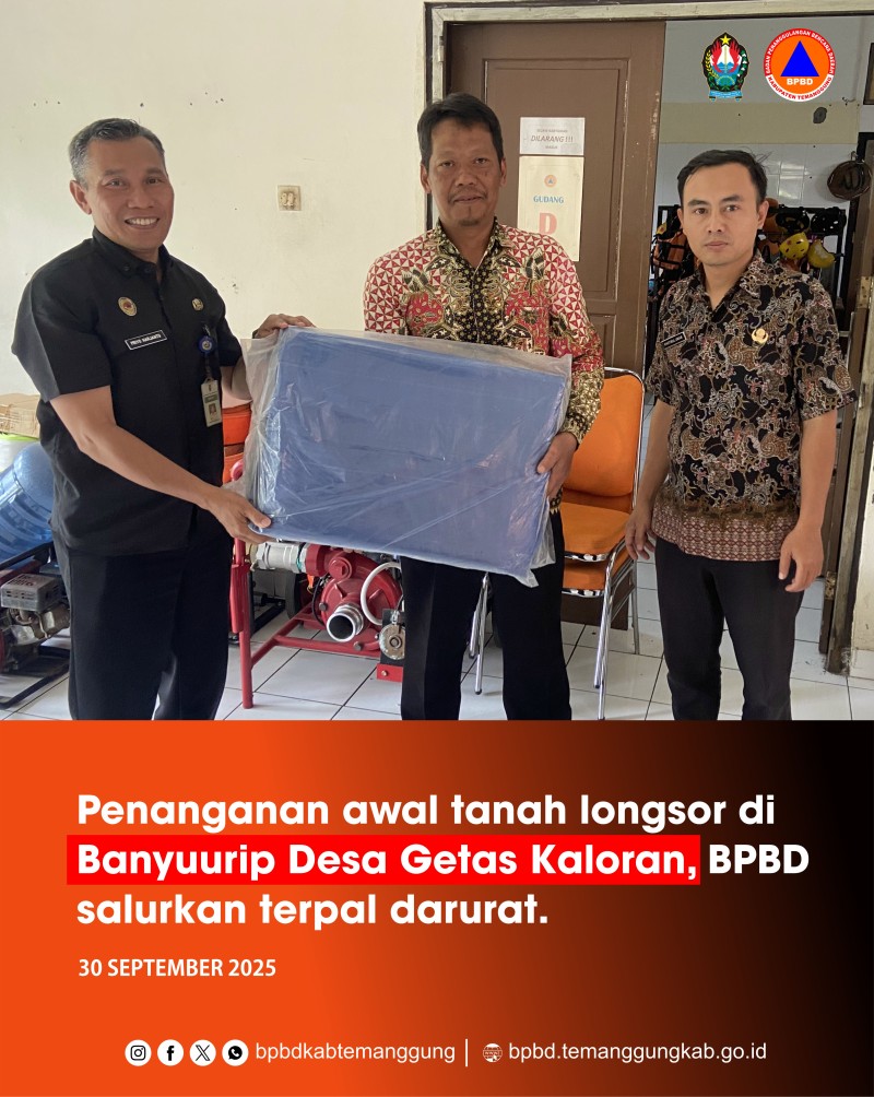 Kategori Smart Government (Pemerintah Cerdas) Kategori: Smart Government (Pemerintah Cerdas) Seksi Penanganan Darurat dan Logistik 30 Sep 2025 19:11:00 11 Hujan Disertai Angin Kencang di Kedu, Pohon Tumbang Timpa Jaringan Listrik dan Lahan Pertanian Selengkapnya Kategori: Smart Government (Pemerintah Cerdas) Seksi Penanganan Darurat dan Logistik 30 Sep 2025 19:10:00 11 BPBD Salurkan Bantuan untuk Korban Bencana Cuaca Ekstrem di Desa Badran Kranggan Selengkapnya Kategori: Smart Government (Pemerintah Cerdas) Seksi Penanganan Darurat dan Logistik 30 Sep 2025 19:08:00 10 Cuaca Ekstrem di Bengkal Timbulkan Kerusakan, BPBD Lakukan Tinjauan dan Penanganan Selengkapnya Kategori: Smart Government (Pemerintah Cerdas) Seksi Penanganan Darurat dan Logistik 30 Sep 2025 19:08:00 6 BPBD Salurkan Bantuan Terpal untuk Penanganan Darurat Longsor di Getas Kaloran Selengkapnya Kategori: Smart Government (Pemerintah Cerdas) Seksi Penanganan Darurat dan Logistik 30 Sep 2025 19:06:00 11 Rapat Koordinasi PSDA Progo Bogowonto Luk Ulo, Antisipasi Musim Hujan 2025/2026 Selengkapnya Kategori: Smart Government (Pemerintah Cerdas) Sekretariat 30 Sep 2025 19:06:00 10 Kepala Sekretariat BPBD Ikuti Rapat Koordinasi DP KORPRI Kabupaten Temanggung Selengkapnya Kategori: Smart Government (Pemerintah Cerdas) Sekretariat 30 Sep 2025 10:31:00 25 Rumput Vetiver Jadi Solusi Alami Pencegahan Longsor di Kabupaten Temanggung Selengkapnya Kategori: Smart Government (Pemerintah Cerdas) Seksi Pencegahan dan Kesiapsiagaan 30 Sep 2025 08:02:00 10 LAPORAN AKTIVITAS GUNUNGAPI SUMBING 30 SEPTEMBER 2025 Selengkapnya Kategori: Smart Government (Pemerintah Cerdas) Seksi Pencegahan dan Kesiapsiagaan 30 Sep 2025 08:01:00 7 LAPORAN AKTIVITAS GUNUNGAPI SUNDORO 30 SEPTEMBER 2025 Selengkapnya Kategori: Smart Government (Pemerintah Cerdas) Sekretariat 29 Sep 2025 19:15:00 131 BPBD Temanggung Ajak Warga Kibarkan Bendera Merah Putih untuk Peringati G30S dan Hari Kesaktian Pancasila Selengkapnya Kategori: Smart Government (Pemerintah Cerdas) Sekretariat 29 Sep 2025 18:43:00 23 BPBD Temanggung Salurkan Bantuan untuk Korban Bencana Cuaca Ekstrem di Desa Nguwet Selengkapnya Kategori: Smart Government (Pemerintah Cerdas) Seksi Penanganan Darurat dan Logistik 29 Sep 2025 18:41:00 18 BPBD Temanggung Tinjau Lokasi Bencana Cuaca Ekstrem di Desa Wonokerso Selengkapnya FirstPrev34567NextLast