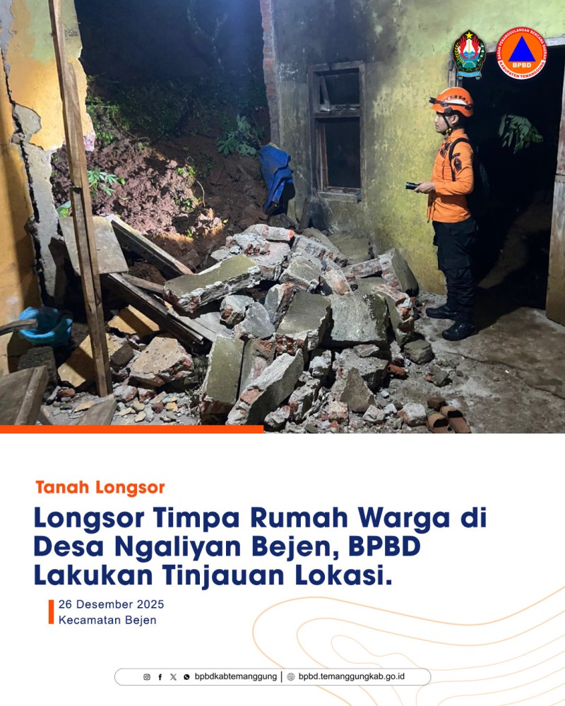 Kategori Smart Government (Pemerintah Cerdas) Kategori: Smart Government (Pemerintah Cerdas) Seksi Pencegahan dan Kesiapsiagaan 27 Desember 2025 08:07:00 1 LAPORAN AKTIVITAS GUNUNGAPI SUMBING 27 DESEMBER 2025 Selengkapnya Kategori: Smart Government (Pemerintah Cerdas) Seksi Pencegahan dan Kesiapsiagaan 27 Desember 2025 08:05:00 1 LAPORAN AKTIVITAS GUNUNGAPI SUNDORO 27 DESEMBER 2025 Selengkapnya Kategori: Smart Government (Pemerintah Cerdas) Seksi Pencegahan dan Kesiapsiagaan 26 Desember 2025 23:28:00 1 LAPORAN AKTIVITAS GUNUNGAPI SUMBING 26 DESEMBER 2025 Selengkapnya Kategori: Smart Government (Pemerintah Cerdas) Seksi Penanganan Darurat dan Logistik 26 Desember 2025 22:31:00 16 Longsor Timpa Rumah Warga di Desa Ngaliyan, BPBD Lakukan Tinjauan Lokasi Selengkapnya Kategori: Smart Government (Pemerintah Cerdas) Seksi Penanganan Darurat dan Logistik 26 Desember 2025 15:33:00 15 Pohon Nangka Tumbang Timpa Rumah Warga di Pandean, BPBD Lakukan Penanganan Selengkapnya Kategori: Smart Government (Pemerintah Cerdas) Sekretariat 26 Desember 2025 12:20:00 2 Gempa Magnitudo 2,6 Guncang Wilayah Temanggung, Warga Sempat Merasakan Getaran Selengkapnya Kategori: Smart Government (Pemerintah Cerdas) Sekretariat 26 Desember 2025 10:34:00 2 Pengamanan Natal 2024 dan Tahun Baru 2026 di Pos Pam RSK Parakan Berjalan Aman dan Lancar Selengkapnya Kategori: Smart Government (Pemerintah Cerdas) Sekretariat 26 Desember 2025 08:33:00 9 Pengamanan Natal 2024 dan Tahun Baru 2026 di Pos Pam Tugu Jam Temanggung Berjalan Kondusif Selengkapnya Kategori: Smart Government (Pemerintah Cerdas) Seksi Pencegahan dan Kesiapsiagaan 26 Desember 2025 06:27:00 1 LAPORAN AKTIVITAS GUNUNGAPI SUNDORO 26 DESEMBER 2025 Selengkapnya Kategori: Smart Government (Pemerintah Cerdas) Sekretariat 25 Desember 2025 19:37:00 2 Pengamanan Natal 2025 dan Tahun Baru 2026 di Pos Pam Tugu Jam Temanggung Berlangsung Kondusif Selengkapnya Kategori: Smart Government (Pemerintah Cerdas) Seksi Pencegahan dan Kesiapsiagaan 25 Desember 2025 16:38:00 2 UPDATE Peringatan Dini Cuaca Jawa Tengah tgl 25 Desember 2025 pkl 16:20 WIB Selengkapnya Kategori: Smart Government (Pemerintah Cerdas) Seksi Pencegahan dan Kesiapsiagaan 25 Desember 2025 13:51:00 7 UPDATE Peringatan Dini Cuaca Jawa Tengah tgl 25 Desember 2025 pkl 13:50 WIB Selengkapnya FirstPrev45678NextLast
